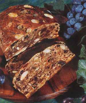 300 g getrocknete Birnen (Kletzen, erhältlich im Reformhaus) + 200 g getrocknete Pflaumen ohne Stein + 200 g getrocknete Feigen + 100 g Rosinen + 100 g Korinthen + 100 g Walnuss- kerne + 100 g Haselnusskerne + 50 g Zitronat + 50 g Orangenat + 500 g Roggenmehl + Salz + 1 Teelöffel Zimtpulver + 1 Teelöffel Nelken- pulver + 1 Würfel Hefe (42 g) + 50 g Honig Zubereitung: Birnen über Nacht in 1,5 Liter Wasser einweichen. Im Einweichwasser aufkochen lassen. Pflaumen, Feigen, Rosinen sowie Korinthen in eine Schüssel geben und die Birnen samt Sud darüber geben. Alles quellen lassen, bis die Früchte durchgezogen sind. Beide Nuss-Sorten grob hacken. Zitronat und Orangenat fein würfeln. Früchte abgießen, den Sud auffangen. Mehl mit Salz, Zimt sowie Nelkenpulver mischen, eine Mulde in die Mitte drücken und die