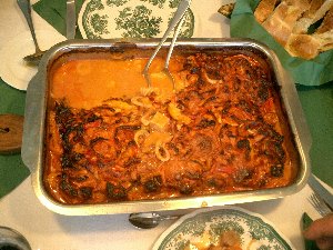eingeschichteten Zutaten geben. Den Bräter offen in den vorgeheizten Backofen stellen und alles, ohne umzurüh- ren, ca. 2 Std. braten. Danach servieren. Zu dem deftigen Pfundstopf passen Pommes, Baguette oder Reis. Guten Appetit.