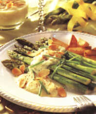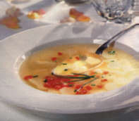 fein würfeln. Die Boullion in vorgewärmte Teller geben. Einige Spargelstücke hineingeben (restlichen Spargel für einen Salat verwenden) und mit denTomatenwürfeln und Schnittlauchspitzen bestreuen. |